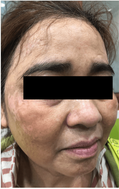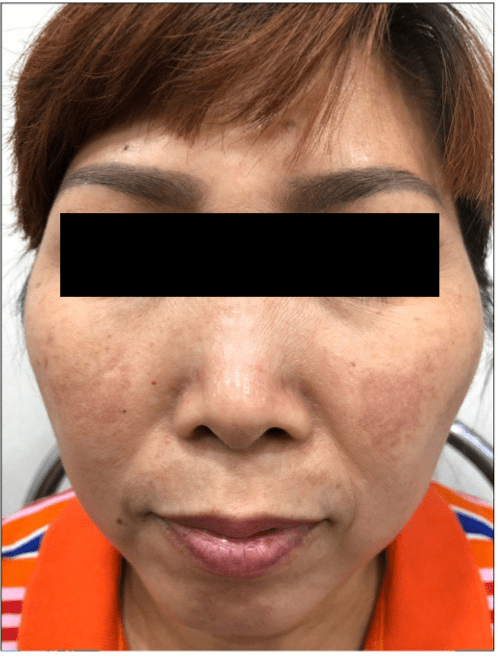 Hình 10 – Nám trên nền da mỏng yếu, nhạy cảm (trái) và nám trên nền da giãn mạch (phải)
