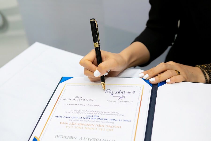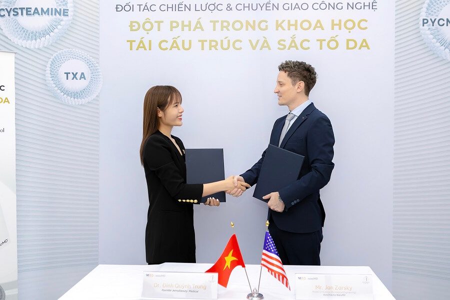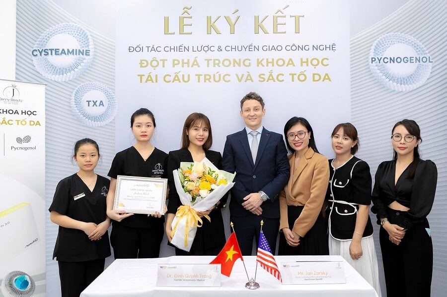 Sau buổi ký kết, JennyBeauty Medical Spa sẽ chính thức là cơ sở ứng dụng sản phẩm NanoMD Cyntra và Viên uống trẻ hoá da NanoMD trong các liệu trình điều trị Tăng sắc tố & Lão hóa da.