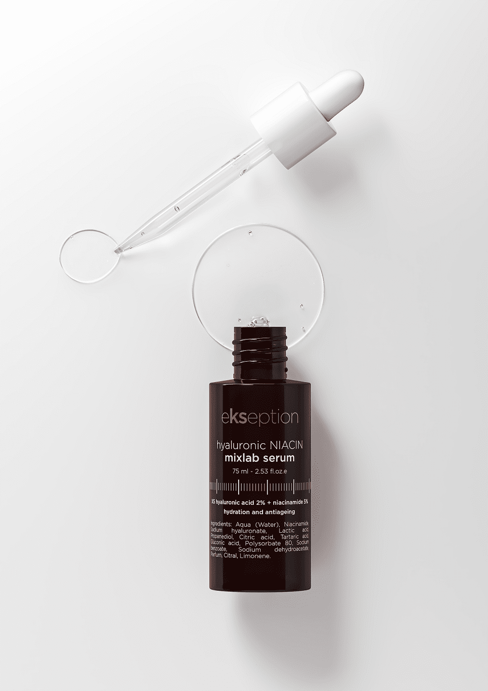 Ekseption Hyaluronic Niacin Mixlab Serum với thành phần hoạt tính giúp dưỡng ẩm và tăng cường collagen. Niacinamide (Vitamin B3) là thành phần cần thiết cho quá trình chuyển hóa, đóng vai trò quan trọng trong việc sản xuất năng lượng tế bào. Niacinamide giúp cắt đứt con đường giải phóng melanin vào lớp biểu bì, từ đó làm ngăn hình thành mảng sắc tố trên bề mặt da, giúp da sáng và khỏe hơn.