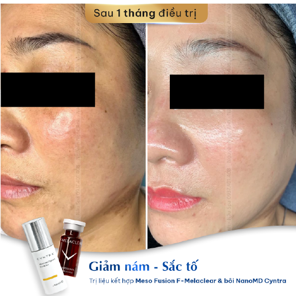 Trị liệu kết hợp Meso Fusion F-Melaclear & bôi NanoMD Cyntra